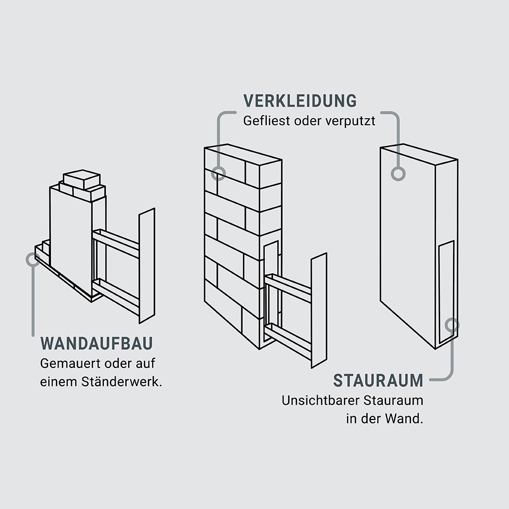 • Individuelle Gestaltung: Der Korpus aus robustem Holzwerkstoff lässt sich mit jedem beliebigen Material verkleiden – ob Fliesen, Putz oder Holzpaneele. So fügt sich der Stauraum nahtlos in Ihr Designkonzept ein.