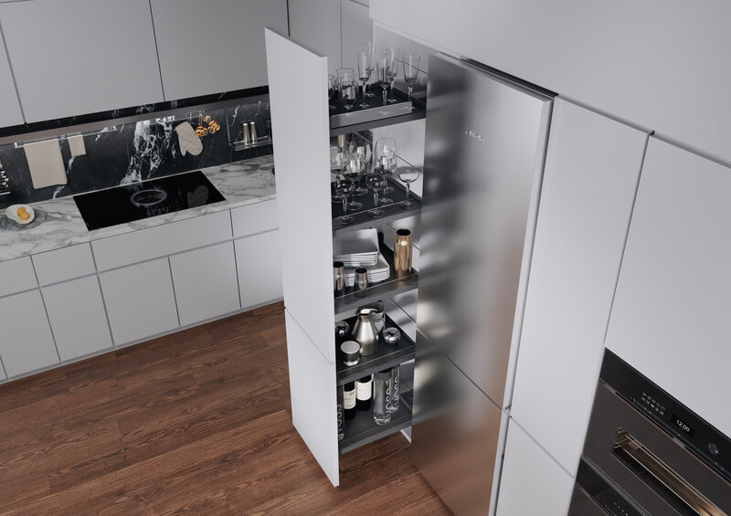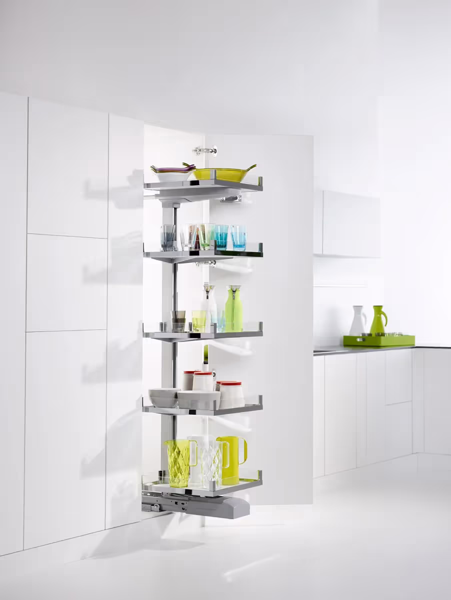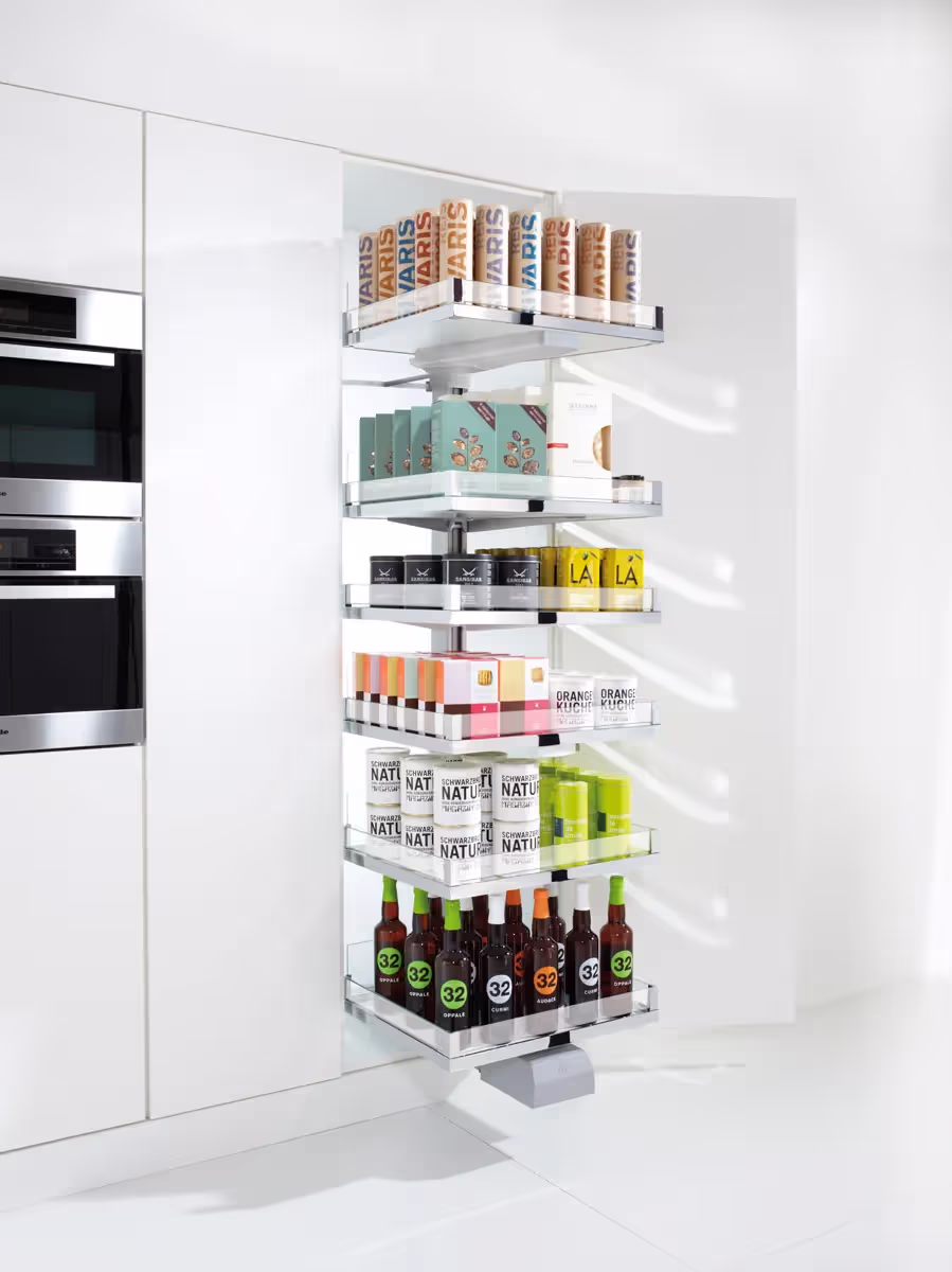 CONVOY Lavido sottolinea la possibile diversità dell'intero sistema CONVOY. Come soluzione di stoccaggio indipendente dal fronte, è adatto a diverse situazioni di design, ad esempio anche dietro le porte scorrevoli. CONVOY Lavido non si limita a conservare i prodotti, ma li presenta anche in modo estetico ed emozionale, estraendoli senza sforzo. Con eTouch si aprono nuovi mondi per il Lavido, che estrae automaticamente il mobile per la conservazione degli alimenti con la semplice pressione di un pulsante. Il CONVOY Lavido può essere personalizzato con larghezze di 450 mm, 500 mm e 600 mm.