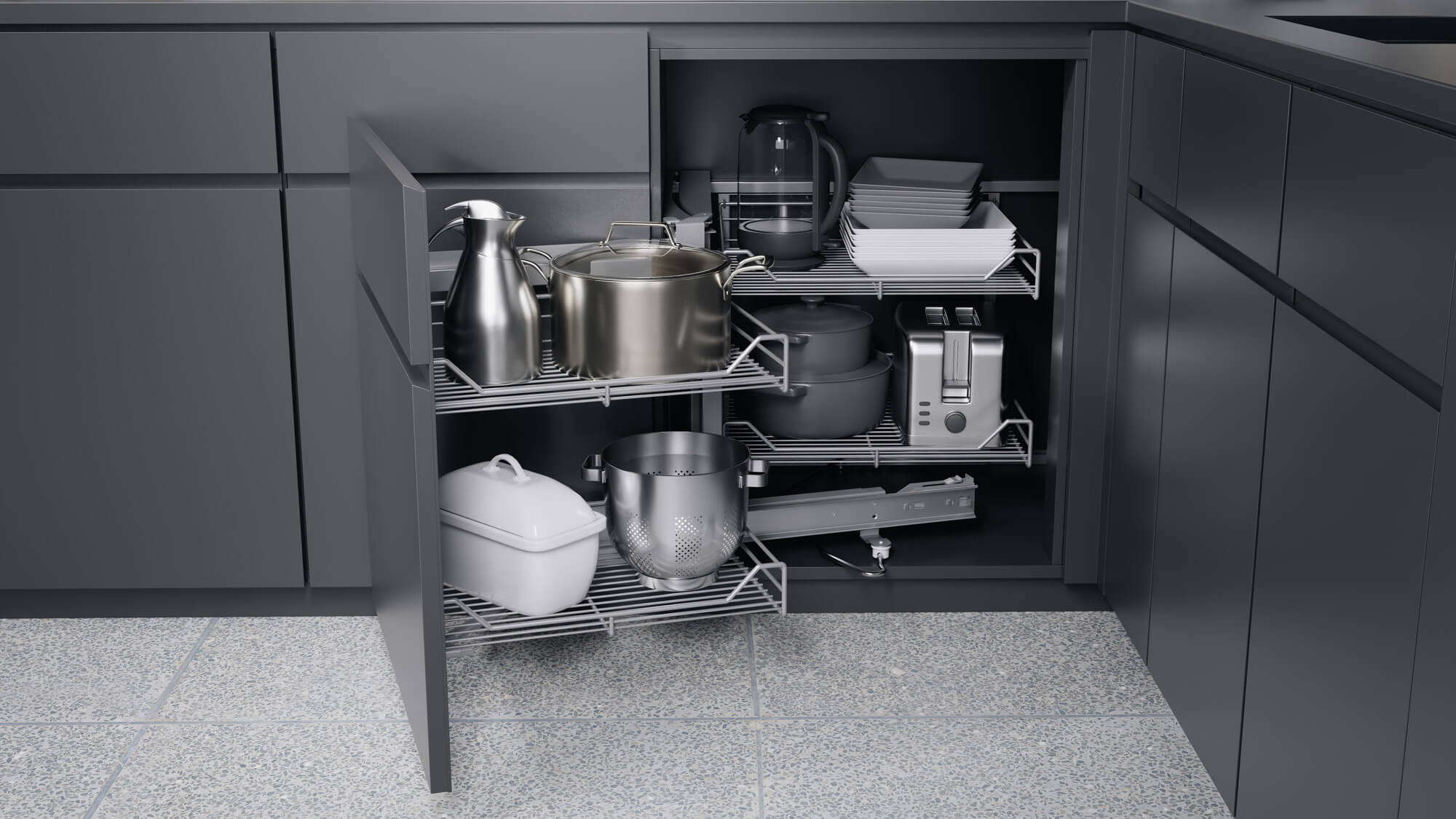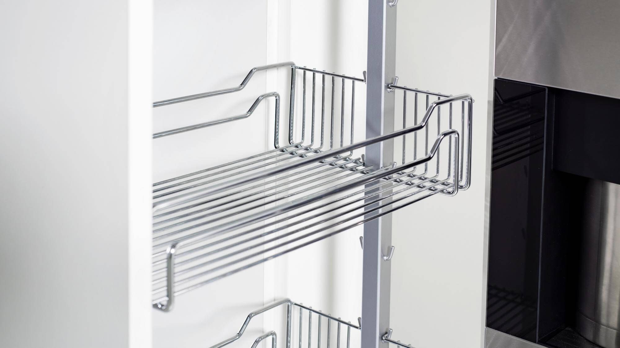 Dank hauseigener Galvanisierung oder moderner Pulverbeschichtung erhalten die Metallkörbe eine besonders hochwertige Oberfläche. In verschiedenen Farben und für zahlreiche Stauraumlösungen erhältlich, bieten sie vielseitige Einsatzmöglichkeiten für unterschiedliche Küchenkonzepte.